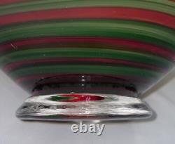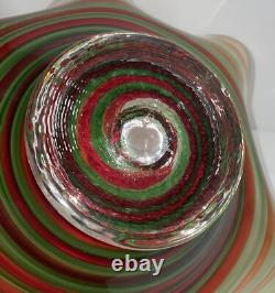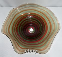 Murano Glass Wavy Edge Stripe Swirl 5 Inch High Bowl Missing Sticker. Pre-owned, no chips or cracks. The sticker fell off, but was told it is Murano. Measures 5 inches high base measures 5 inches from edge to opposite edge. Many air bubbles throughout unit.