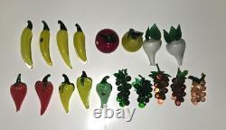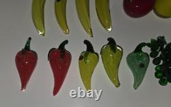 Murano Style Hand Blown Art Glass Fruit Vegetables Lot Of 18 Vintage Grape pear